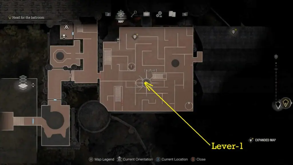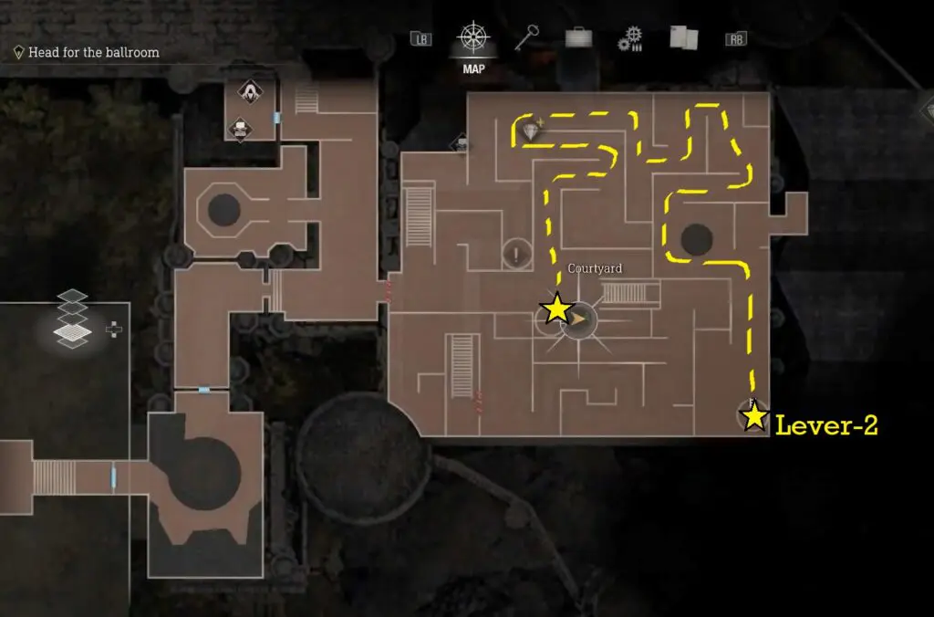 Your primary objective in the castle’s courtyard is to locate and activate the Flag Tower Levers, which will grant you access to the Ballroom. To achieve this, you must navigate through a maze filled with enemies and search for the three levers that lower the flags.