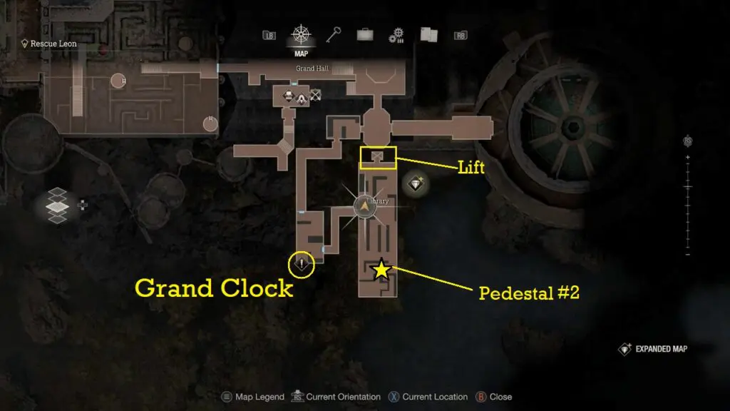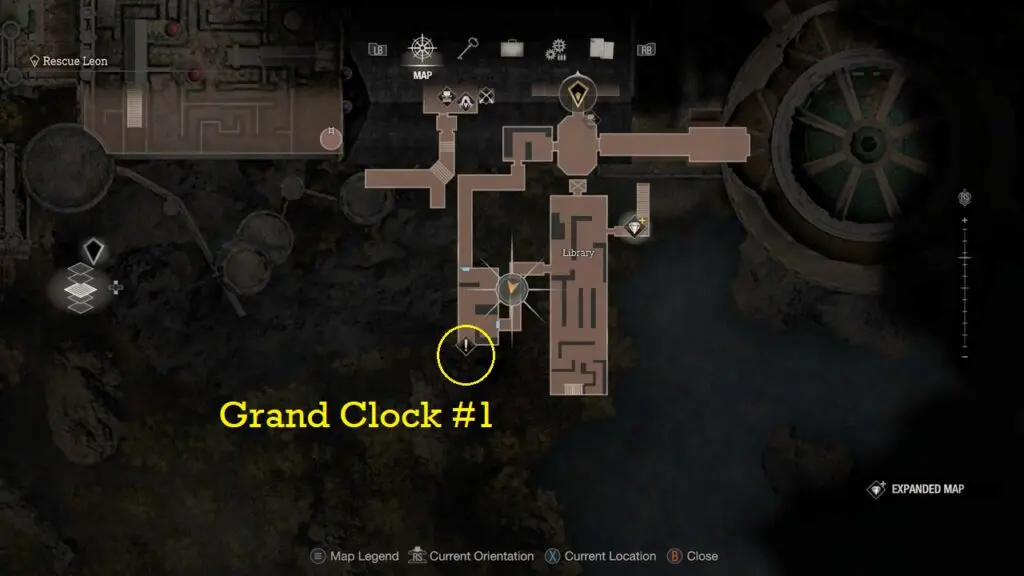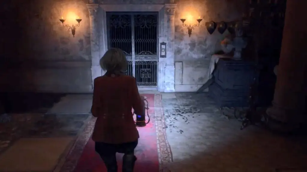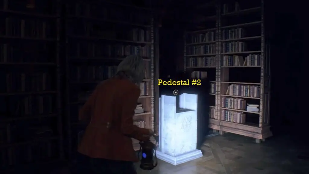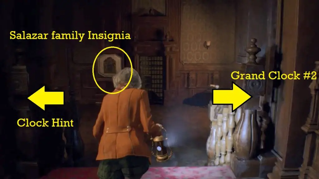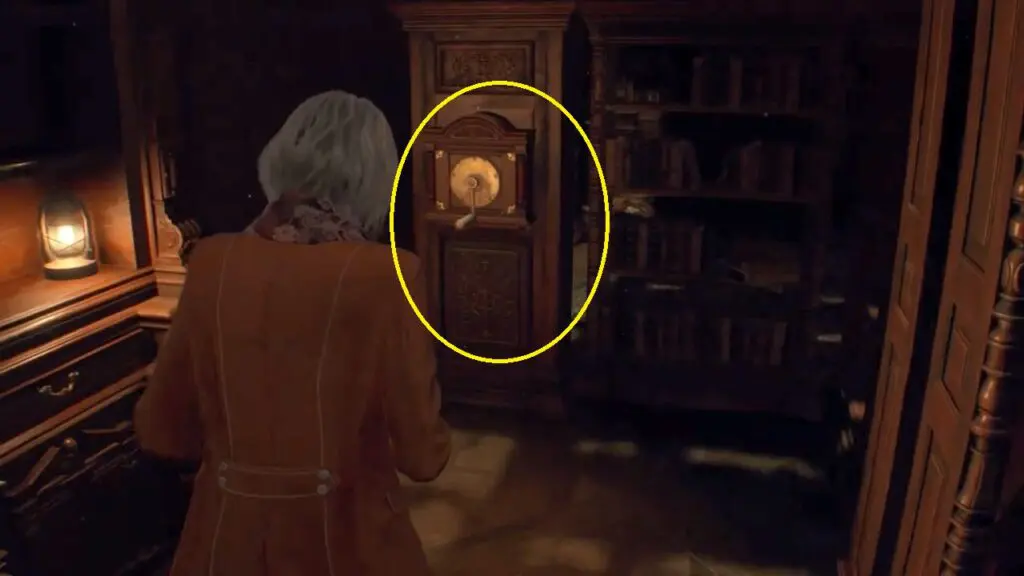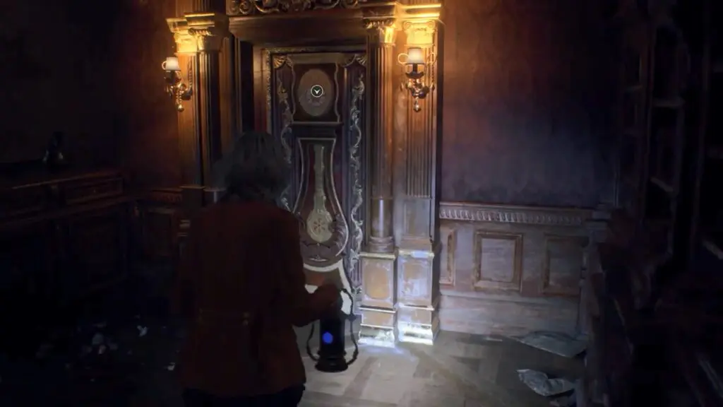 You’ll be required to play as Ashley as you make your way forward to find a way to get Leon out of where he got locked in. To unlock the path in the wall, retrieve the lantern from the pedestal and proceed along the pathway until you arrive at the Library. You will find a Grand Clock on the way that you unlock.