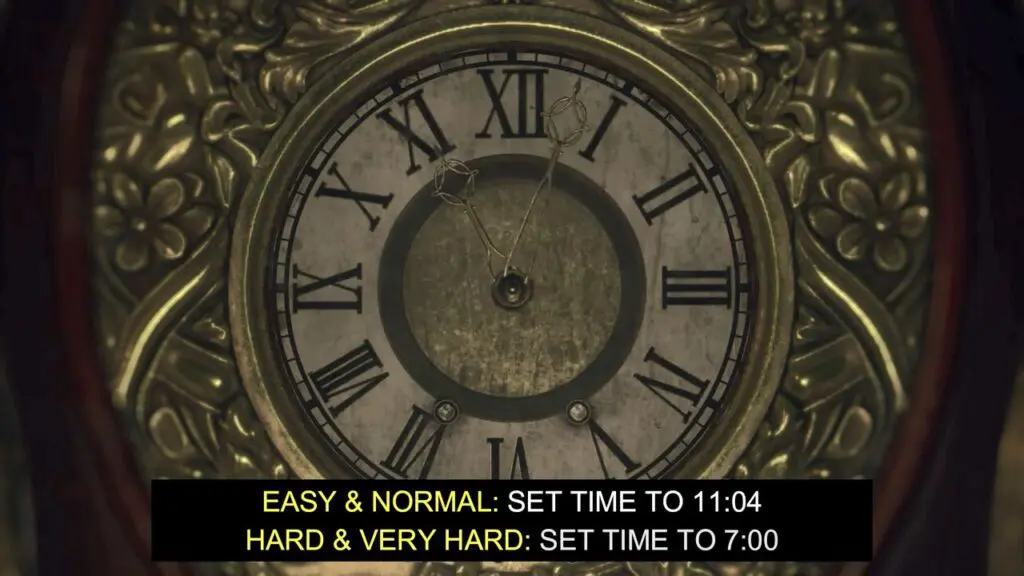 The note on the table will display different times depending on the game difficulty: 11:04 on Assisted/Standard difficulty and 7:00 on Hardcore/Professional difficulty. Once you’ve read the note, return to grand clock #2 and adjust the hands to match the displayed time. This will unlock the door, and all you need to do is change the clock hands to the correct time.