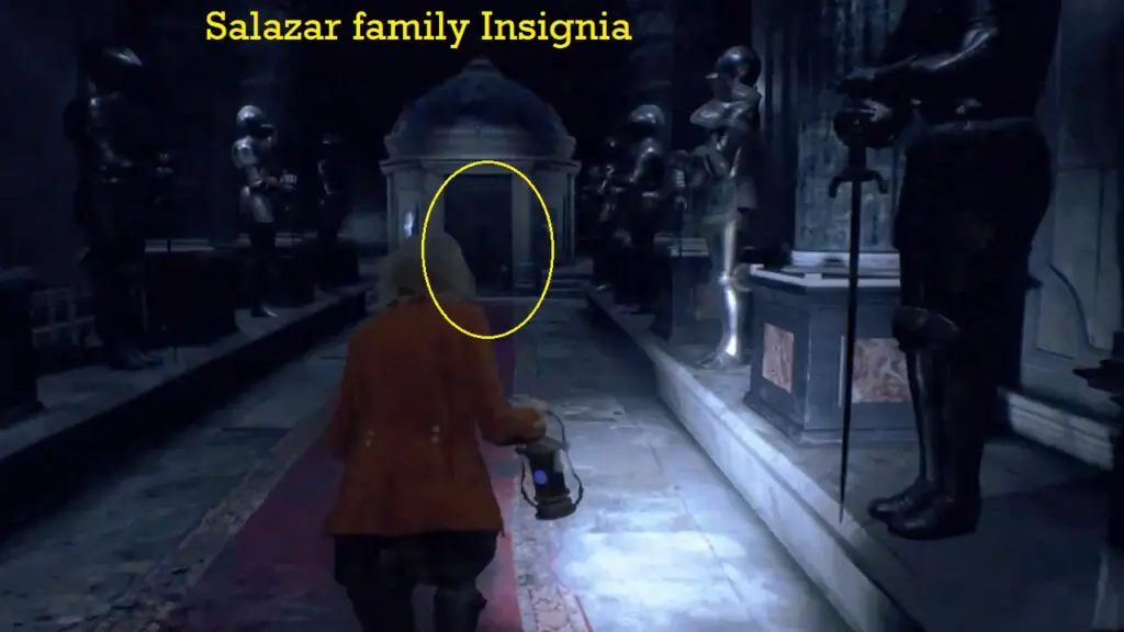 Begin by swapping the lamp you’re currently holding (full moon) with the one at the rear of the room. Then, relocate the crescent moon lamp to the left and the star lamp to the right. This will unlock the central area, allowing you to retrieve the Salazar Family Insignia.