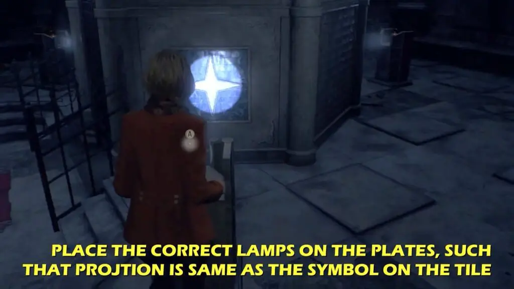 Proceed along the path from the Mausoleum until you encounter a puzzle involving lamps. The objective is to position each lamp onto the correct pedestal, with each one casting a unique shape onto the wall. To solve the puzzle, you can easily exchange the lamp in your possession with those on the pedestals and move them as needed.