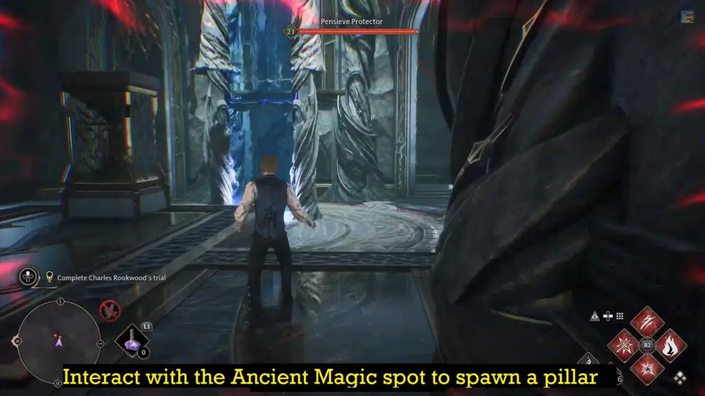 Continue into the next room and interact with the Ancient Magic spot to spawn a pillar.