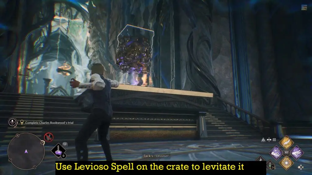 ( Optional chest: Without going into the portal, cast Wingardium Leviosa at the chest to move it out. Enter the portal and access the chest)