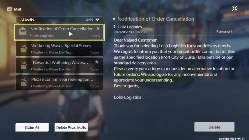 Check the mail sent from Lollo Logistics | Wuthering Waves