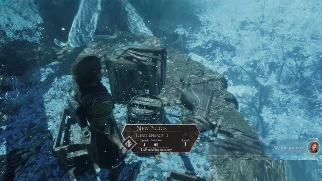 Fast travel to the Abandoned Expedition Camp Rest Point. From there, head forward to exit the cave, then follow the right side path to find Dead Energy 2 Pictos near the cliff edge.