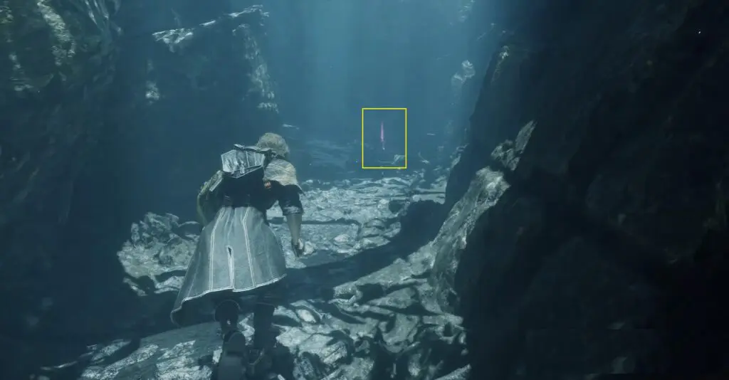 After defeating the previous enemy, continue forward and check the rocky wall on the right for a small alcove containing the Critical Burn Pictos.