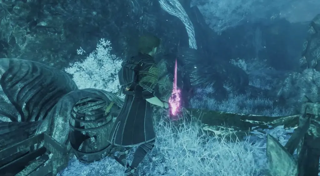 Fast travel to the Abandoned Expedition Camp Rest Point. After leaving the camp, head down the slope where you’ll encounter the first enemy—defeat it to obtain the Lighterim weapon.