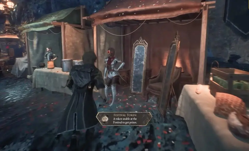 Once you have the token, head inside the tent with the red roof to speak with Amandine. She will offer you a new hairstyle.