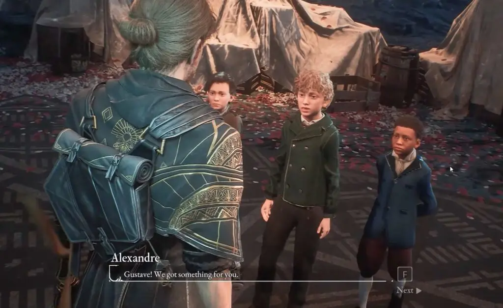 At the Expedition Festival, head to the right side of the tents where you’ll find three boys. Talk to them to receive A Journal From Gustave’s Apprentices.