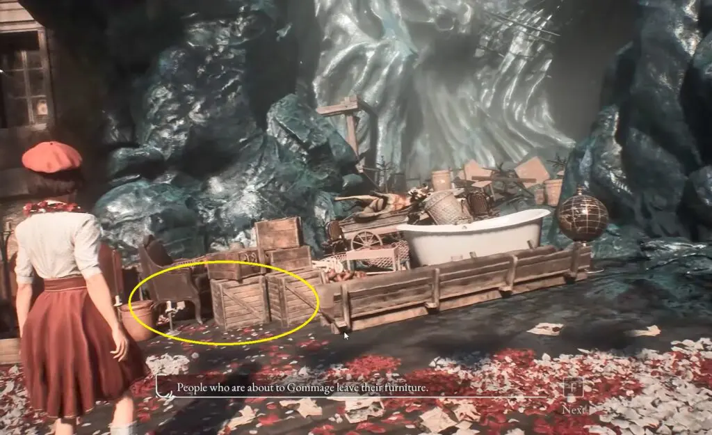 Look for a bathing tub on the left side of the Plaza. Examine the wooden boxes near it to obtain Colour of Lumina.
