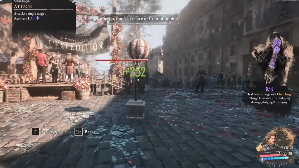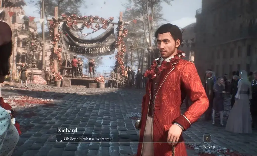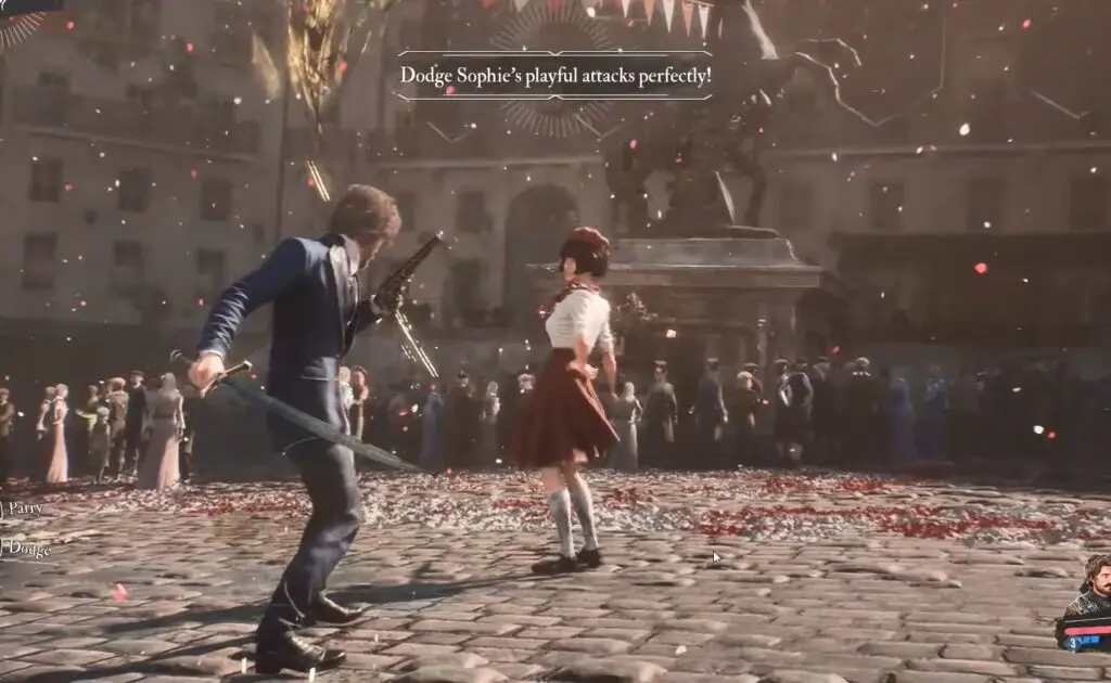 Once you’ve passed through the Flower Market, look for Nicolas—a painter standing by a canvas near a horse statue on the left side of the street. Speak with him to begin a challenge where you must dodge Sophie’s attacks six times in a row.