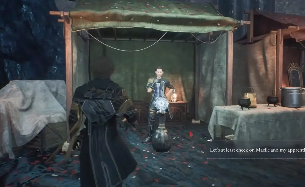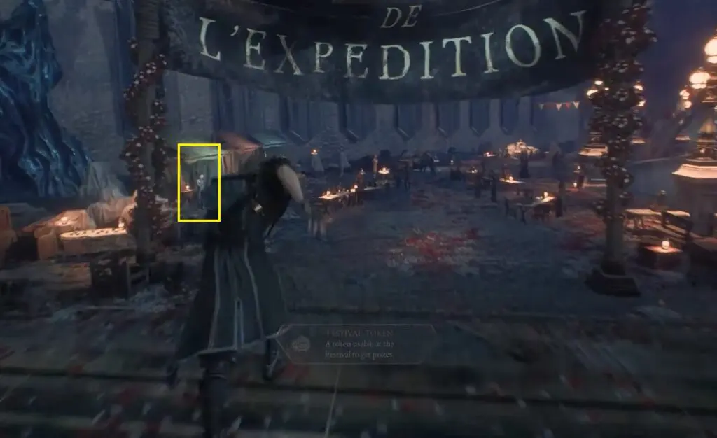 Once you have the token, go inside the tent with the red roof to meet Colette. She will give you an old key.