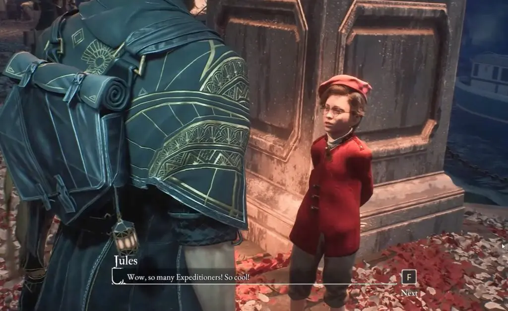 At the Expedition Festival, near the stairs, look for a young boy wearing spectacles and a red coat. This is Jules. Speak with him and he’ll insist that you take the uniform, which unlocks the first custom outfit for Gustave.