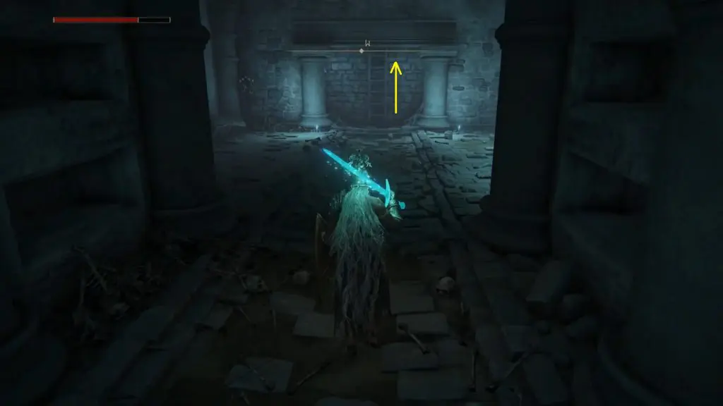 After entering the catacomb, take the elevator down. Then proceed ahead in a linear path to reach the door to the boss lair. The door will be closed now. Take the path to the right.