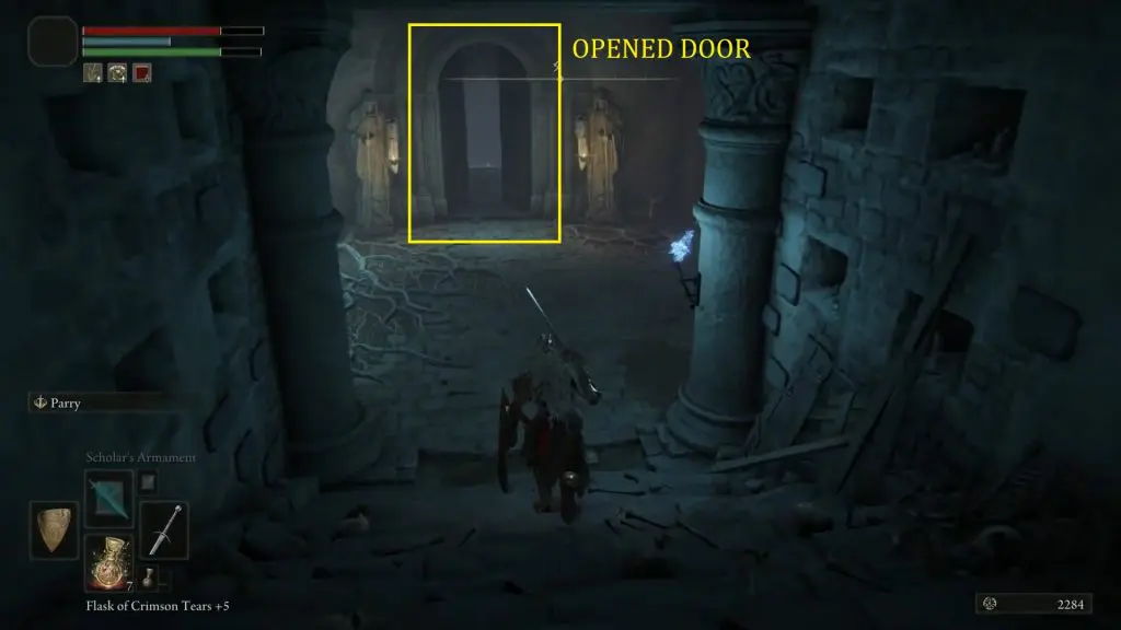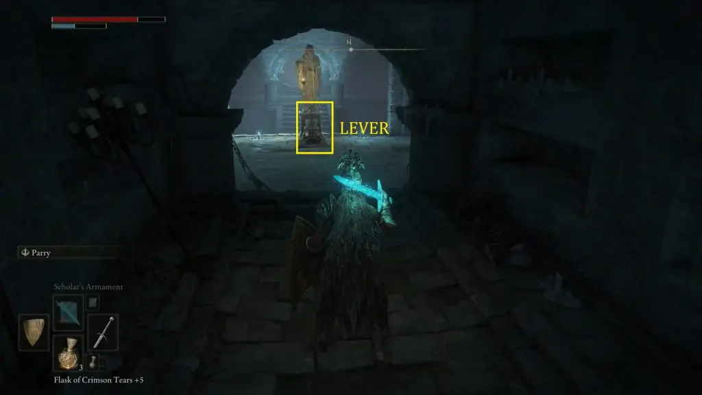 Then turn right and go to the lever in front of the statue as shown below. Pull the lever to open the boss door.