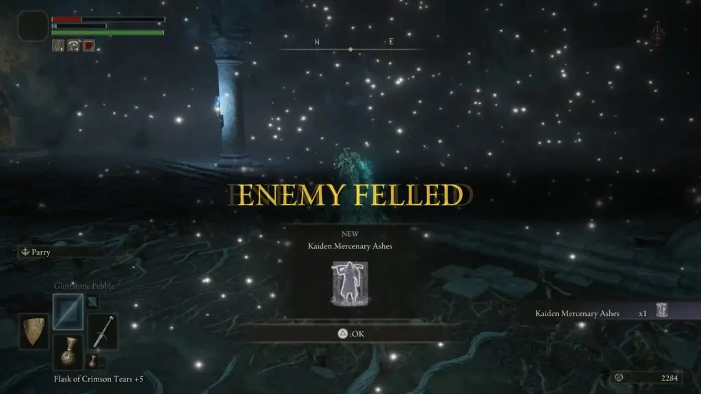 After pulling the lever, jump down. Then trace your path back to the boss door, which will be open now. Go inside the door and defeat Erdtree Burial Watchdog Boss to get Kiaden Mercenary Ashes. Open the chest inside the boss area to get Deathroot.
