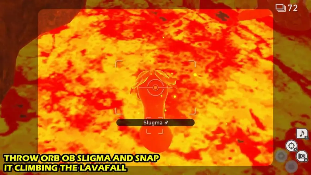 In New Pokemon Snap, travel to the islands that make up the Lental region. There are dozens of Pokémon roaming around Lental island. The request is to take a photo when Slugma Climbing lavafall.