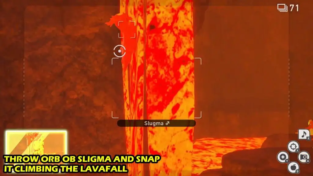 - It’ll then start climbing the Lavafall. Snap a photo to fulfill the request.