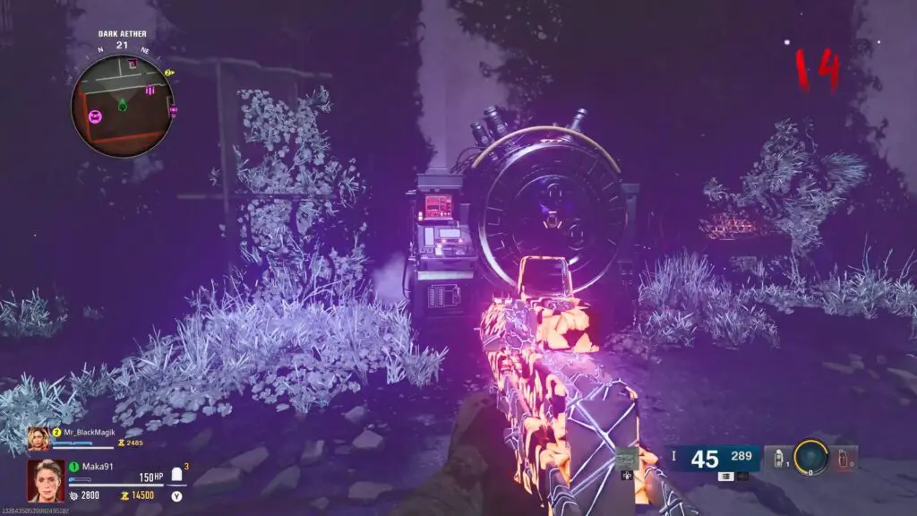 Protect the LTG device from waves of zombies for 60 sec until a mini-boss appears. To charge the Aether Canister, defeat the mini-boss close to it, causing an energy arc to transfer from the creature to the canister.