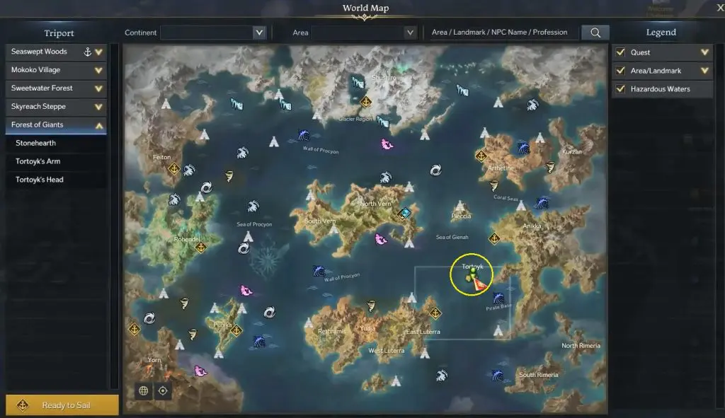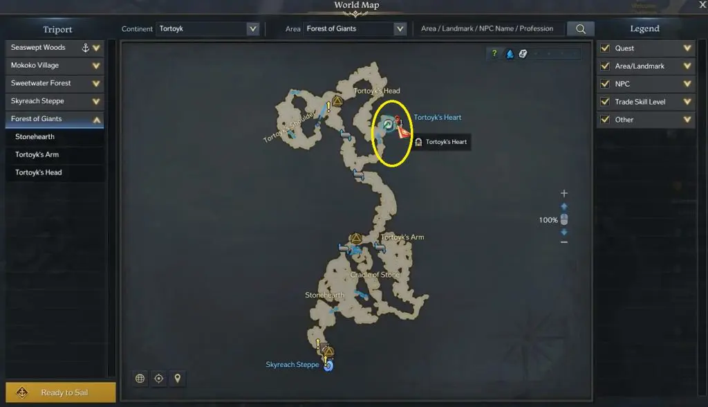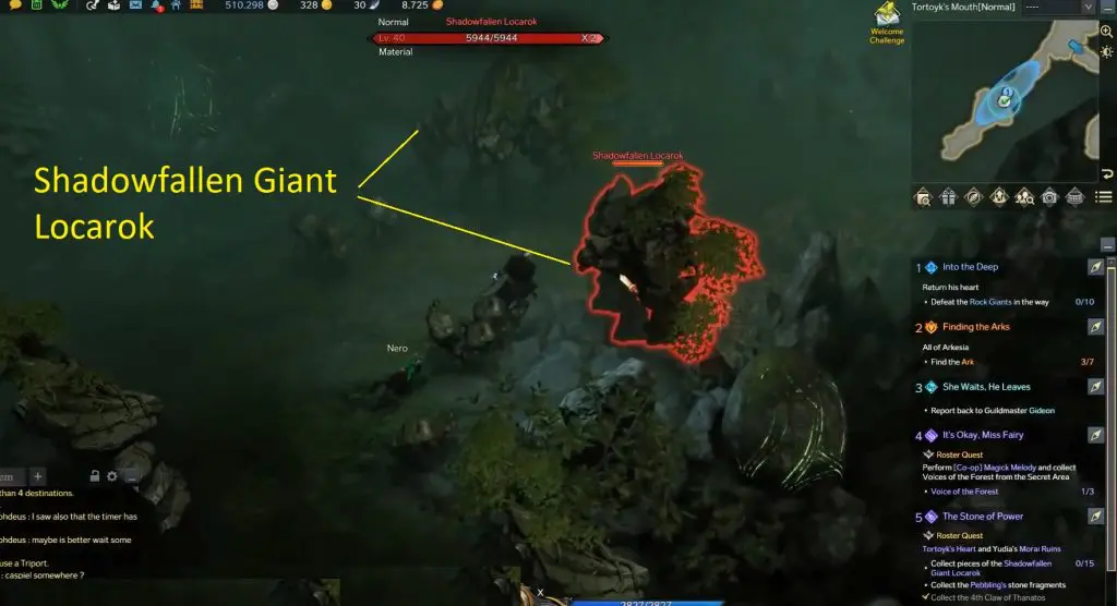 To collect the 15 x shadowfallen Giant Locarok items, head to Tortoyk Island and then proceed to the Forest of Giants on that island and enter the Tortoyk’s Heart dungeon. I have marked the location on the map. Defeat all the Shadowfallen Giant Locarok to collect 15 pieces of Shadowfallen Giant Locarok.