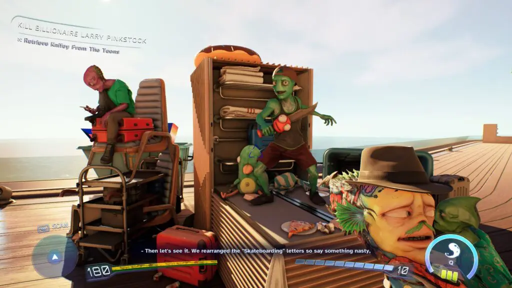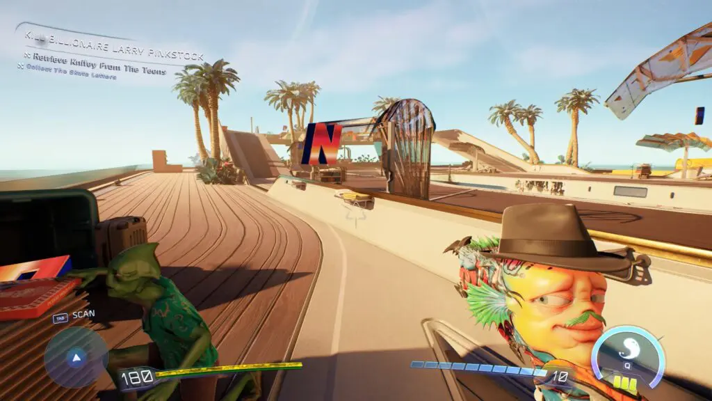 This article will guide the player on how to complete the objectives Collect the Skate Letters and Retrieve Knifey from the Teens for the quest Kill Billionaire Larry Pinkstock in the game High on Life 2.