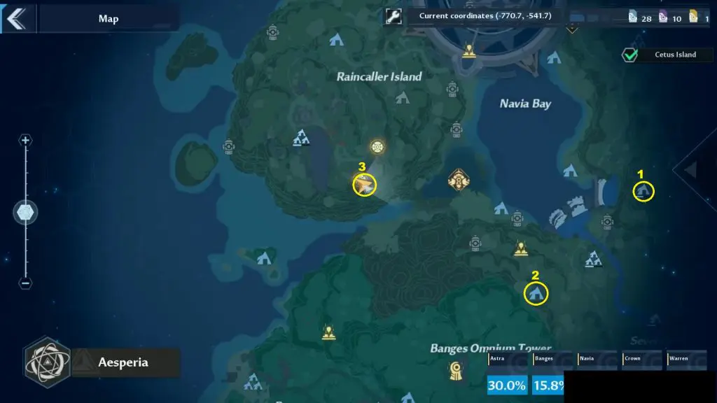 Now you need to activate 3 Signal Towers in Navia. The locations of the three Signal Towers are marked in the picture below.