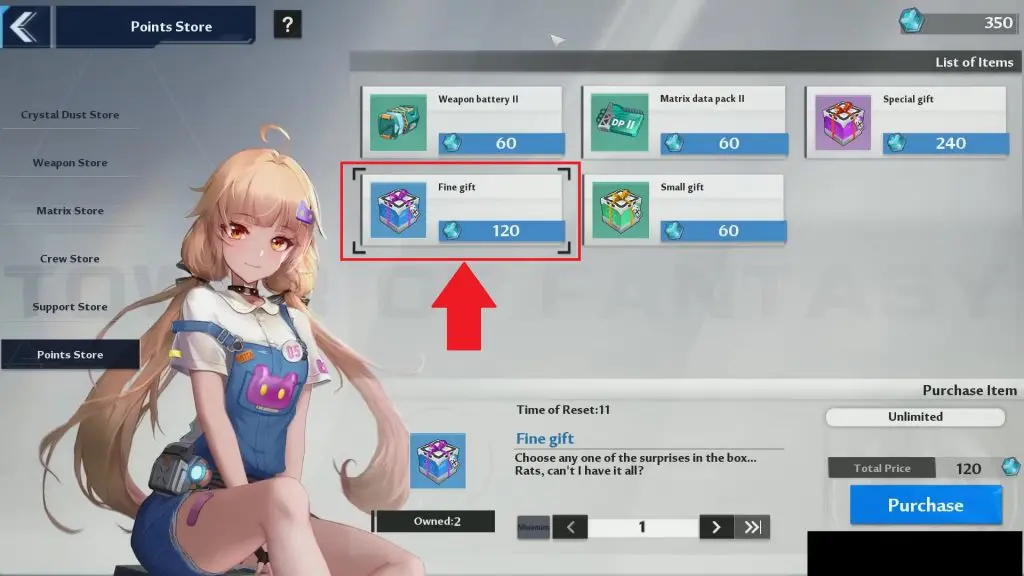 Before continuing, get 2 tool sets as you will be needing them later. To get tool sets, purchase 2 “Fine Gifts” from either Crystal Dust Store or from the Points Store as shown below.