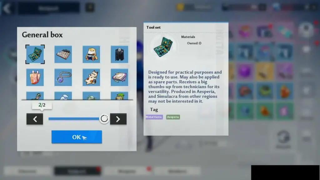 Now, go to your backpack and use the Fine Gifts. Once it’s open, make sure that you select the Tool Set and grab two of those as shown in the second picture below. You will be needing these Tool Sets later.
