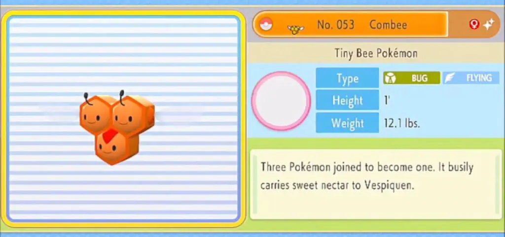 Combee is a Bug/Flying-type Pokemon available in the Pokemon Brilliant Diamond and Shining Pearl game. You will find Female Combee in the Grand Underground’s Grassland Cave or Sunlit Cavern Hideaways. This guide shows how to reach the grand underground and the underground hideaway/ Biome, and where you will find Female Combee.