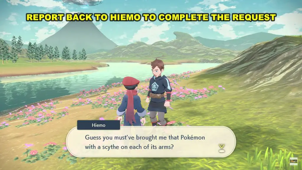 This walkthrough will guide you through everything you need to know on how to solve the request “Coming Up Roses” in Pokemon Legends: Arceus. Hiemo (NPC) will ask you to bring them a Pokemon with a scythe on each arm.