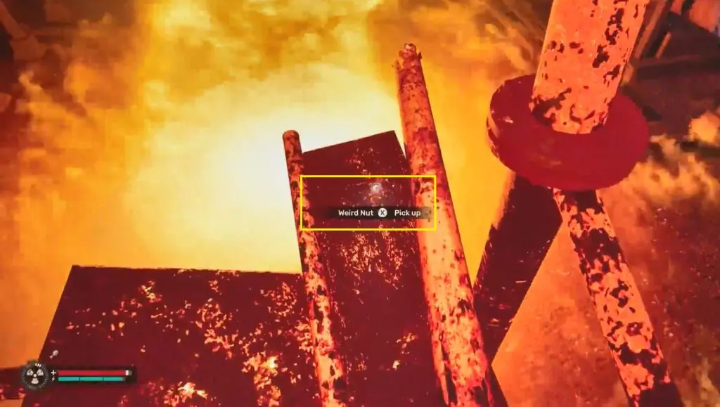 In the Cooling Towers area, you can find the Weird Nut by solving the Fire Whirl anomaly within the large yellow circle.