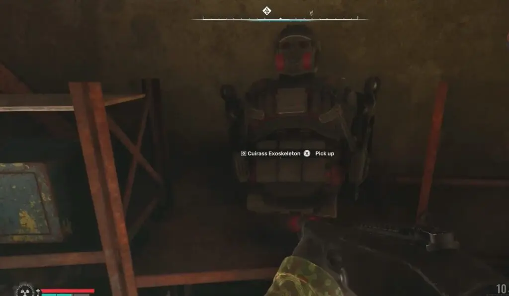 The Cuirass Exoskeleton is located at the SKD Assembly Unit in the Cooling Towers area. To reach it, climb multiple staircases and a ladder inside the building.
