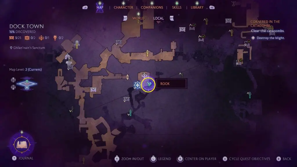 Then return to the previous room with a statue and look at the ceiling to find another Blight. Use Darvin’s Blight Hunter ability to attack the giant Blight on the ceiling.