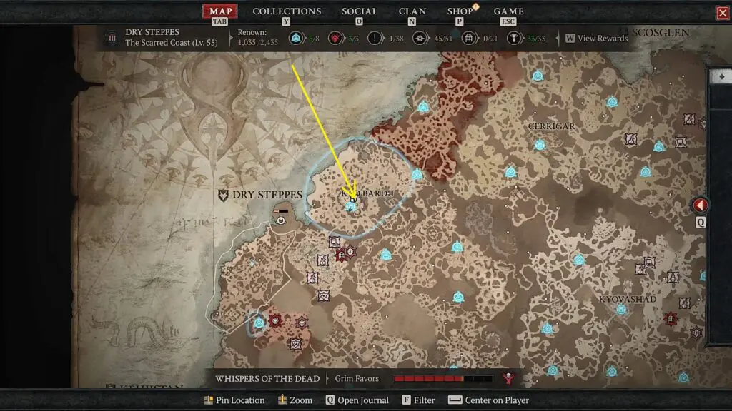 This guide shows the complete walkthrough of the Corroding Mettle side quest in the Diablo 4 game, released on 6th June 2023. You get the quest by talking to Siban in the Kotama Grasslands area in the Dry Steppes region as shown in the pictures below.