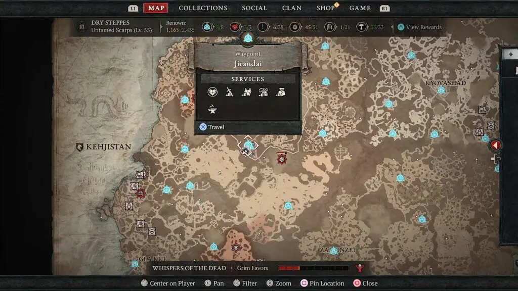 Go to the Untamed Scarps area in the Dry Steppes region and you will find Khada’s Caravan at the location shown in the pictures below.