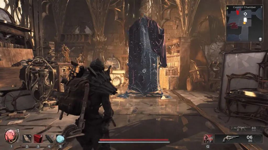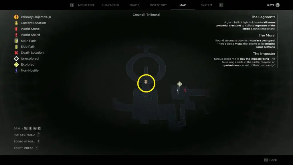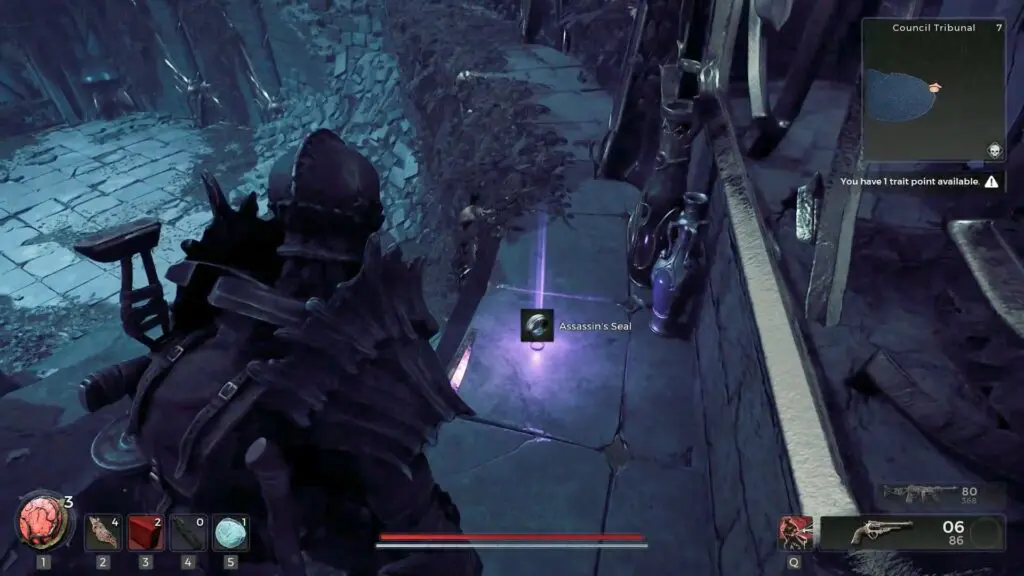 Leave the Council Chamber, turn right, and follow the linear path to reach the Council Tribunal. Here you need to find the evidence regarding the traitor.