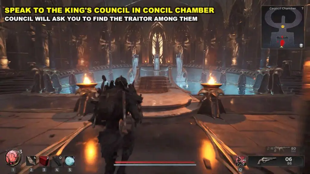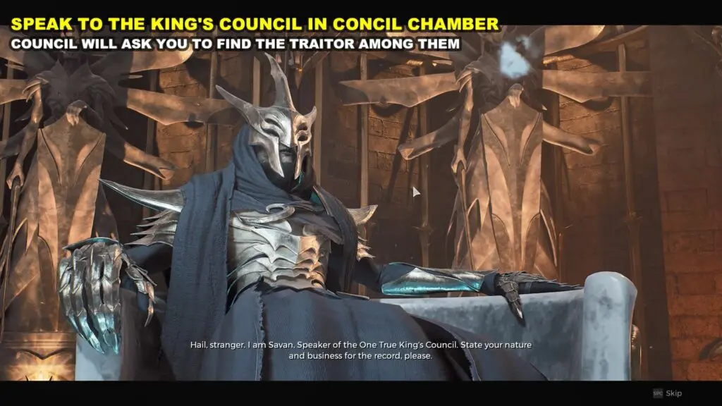 From the checkpoint, go upstairs to the King’s Council in Council Chamber. The council will ask the player’s help to investigate and identify the traitor among them.