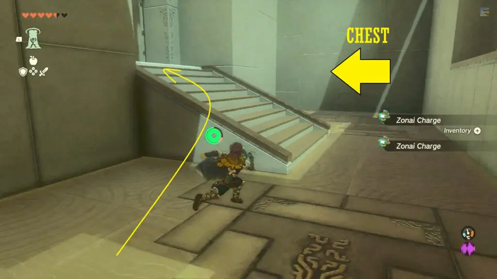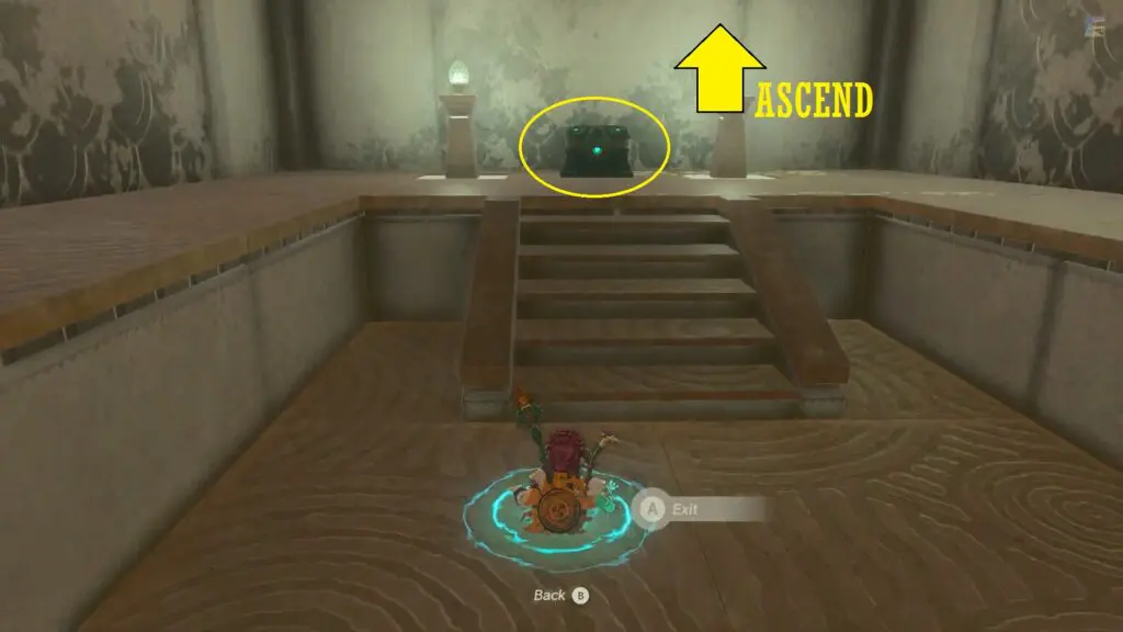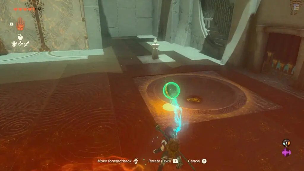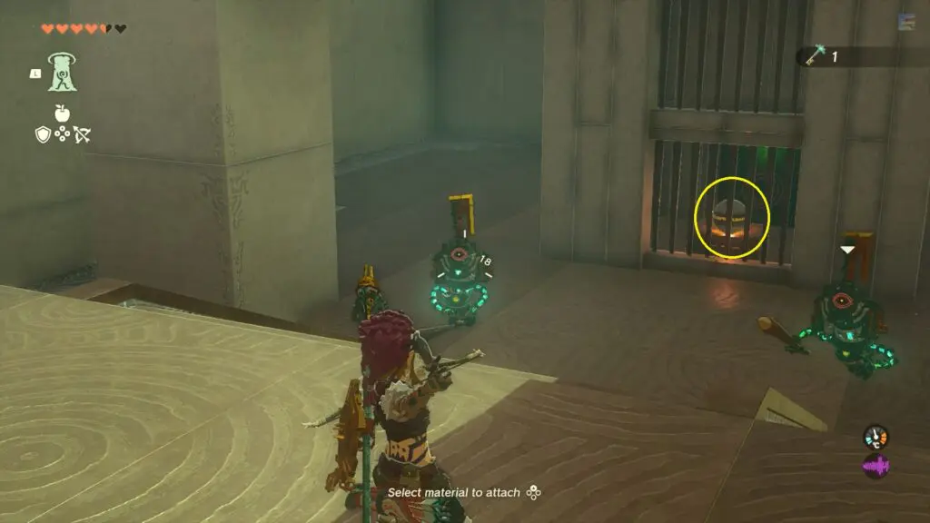 Proceed to the right of the double door. Defeat the enemy before unlocking the treasure chest. Then use the Ultrahand ability to open the door and enter inside.