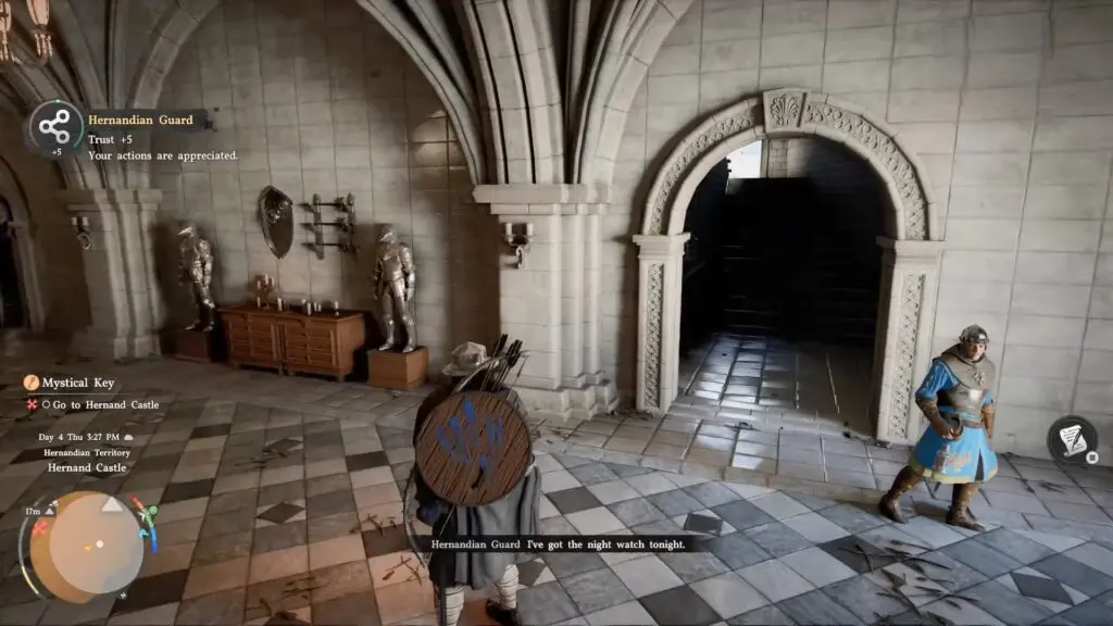 As the quest begins, make your way to Hernand. Approach the group of soldiers to trigger a cutscene, where they explain that something strange is happening and ghosts are roaming inside the castle.