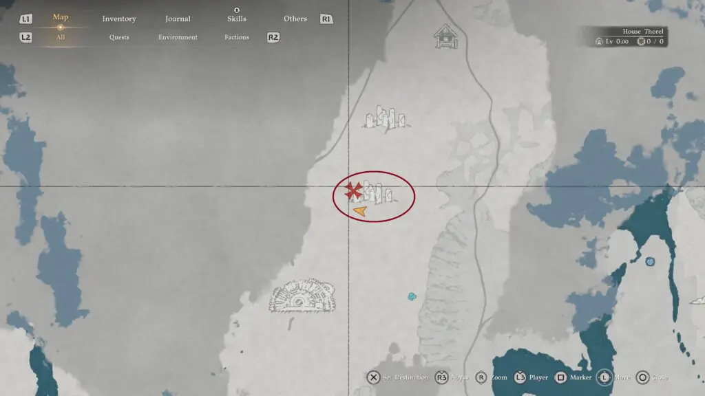 Look for a hidden entrance blocked by thorned vines in a corner section of the ruined building. Burn the vines and enter the tunnel, and take two right turns. At the end, open the treasure chest to obtain the Frostcursed Plate Cloak.