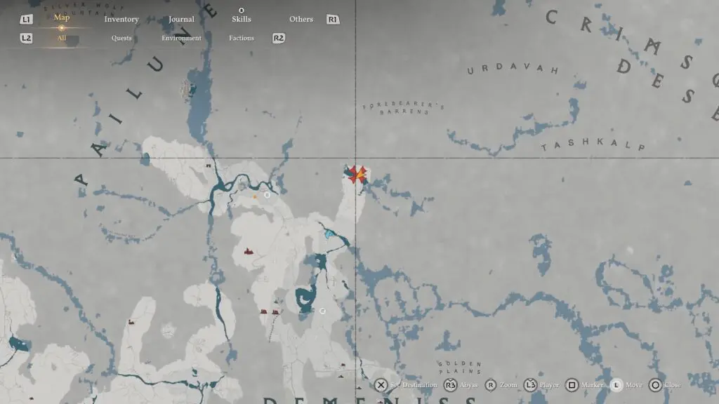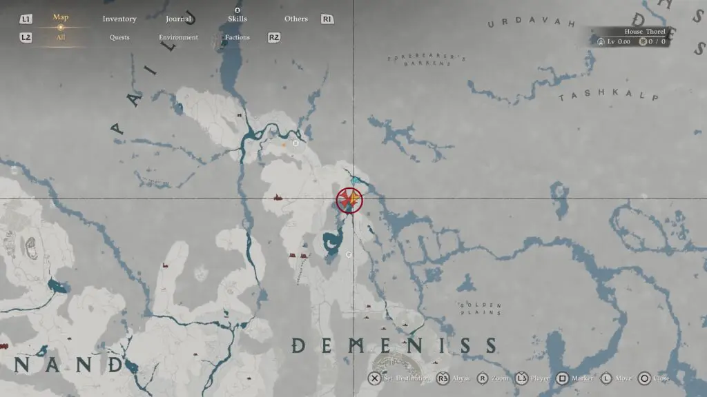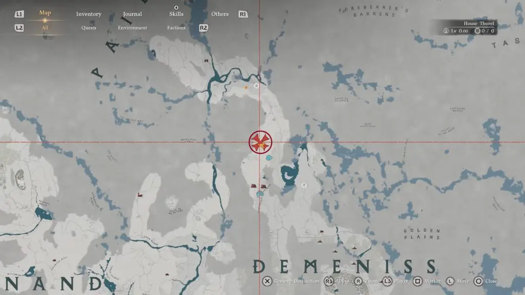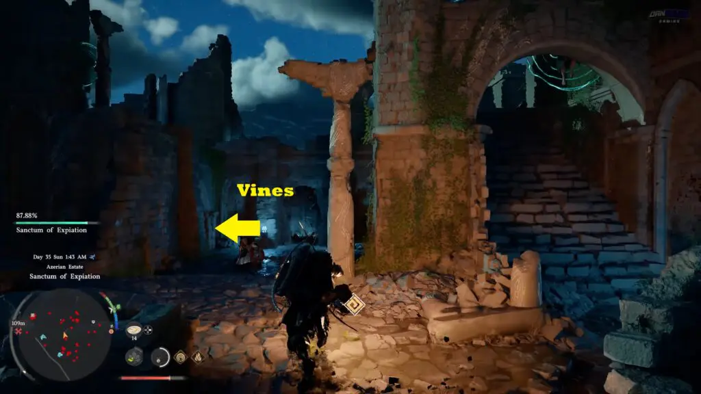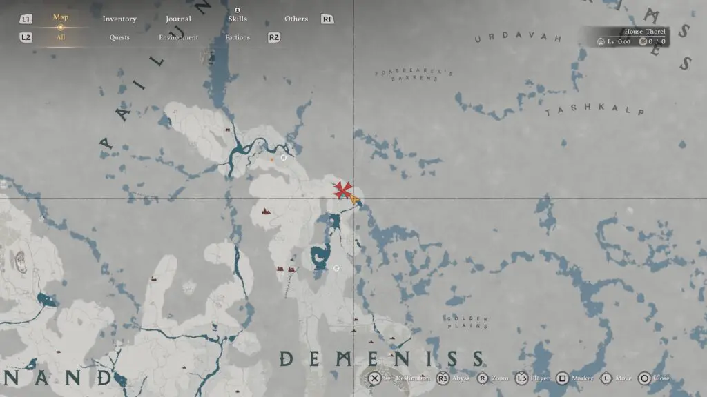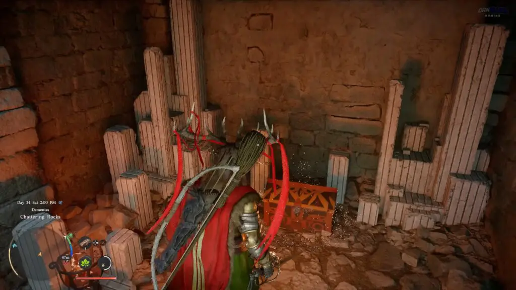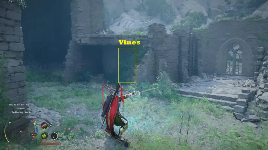 Head to Chattering Rocks in the northwestern part of Demeniss, and make sure you go to the southern ruin among the two nearby locations. Look for a structure with a ladder on its side, then move around it to find vines covering the entrance to a hidden room.