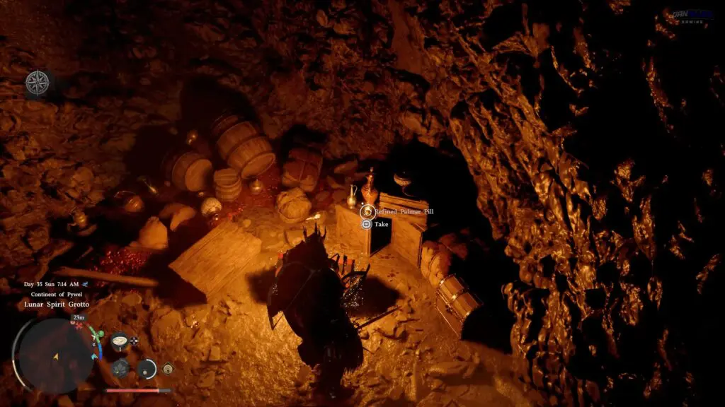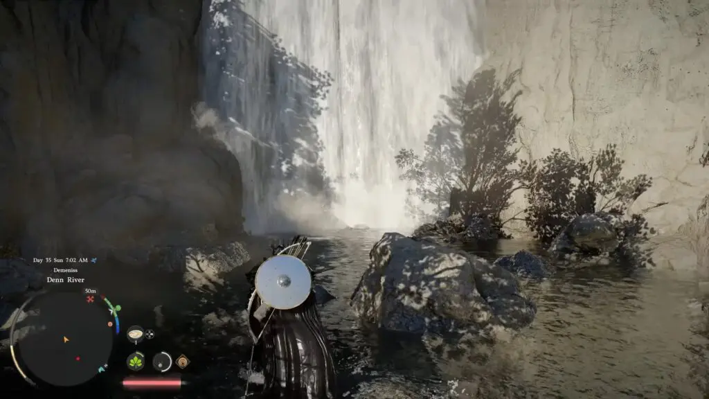 Head to the river marked on the map. There is a hidden entrance behind the waterfalls. Use the armed skill Stab to pass through the waterfall without taking damage.