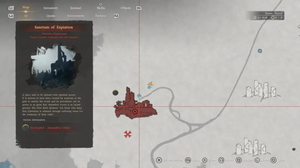 Next, head to the Sanctum of Expiation, located northwest of Demeniss near Chattering Rocks. Either fight the enemies or run past them.