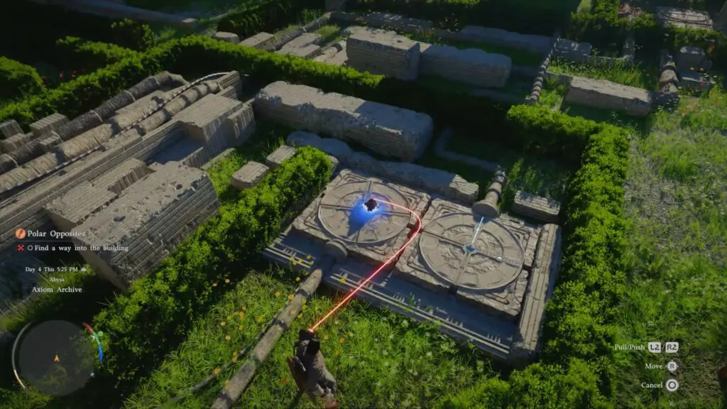 Once activated, you can control objects using the right thumbstick, allowing you to push, pull, or move them freely. This is especially useful for solving environmental puzzles where objects need to be aligned or repositioned.
