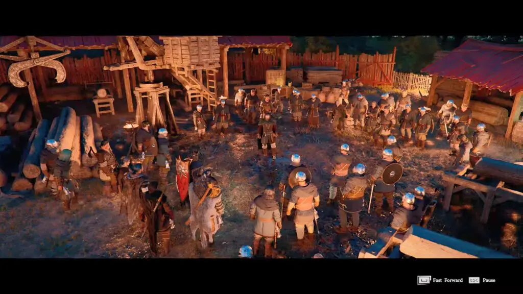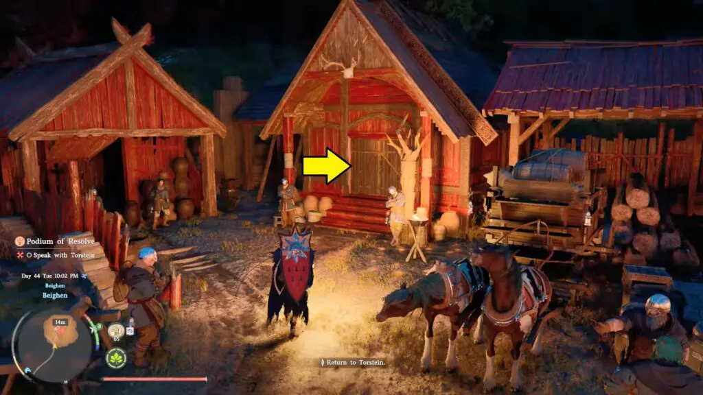 After the cutscene, make your way over to Torstein and follow him out to the yard where his men are gathered. Another cutscene will start up here, showing Torstein addressing his men.
