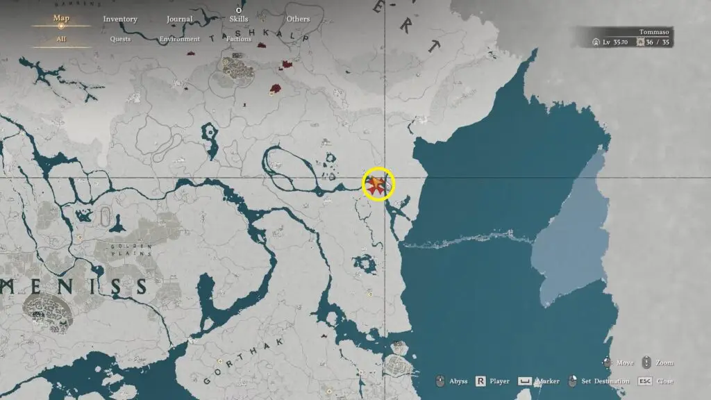 The Red River Runes puzzle is found in the Red River region, north of Demeniss. It is located in the river area between landmarks.