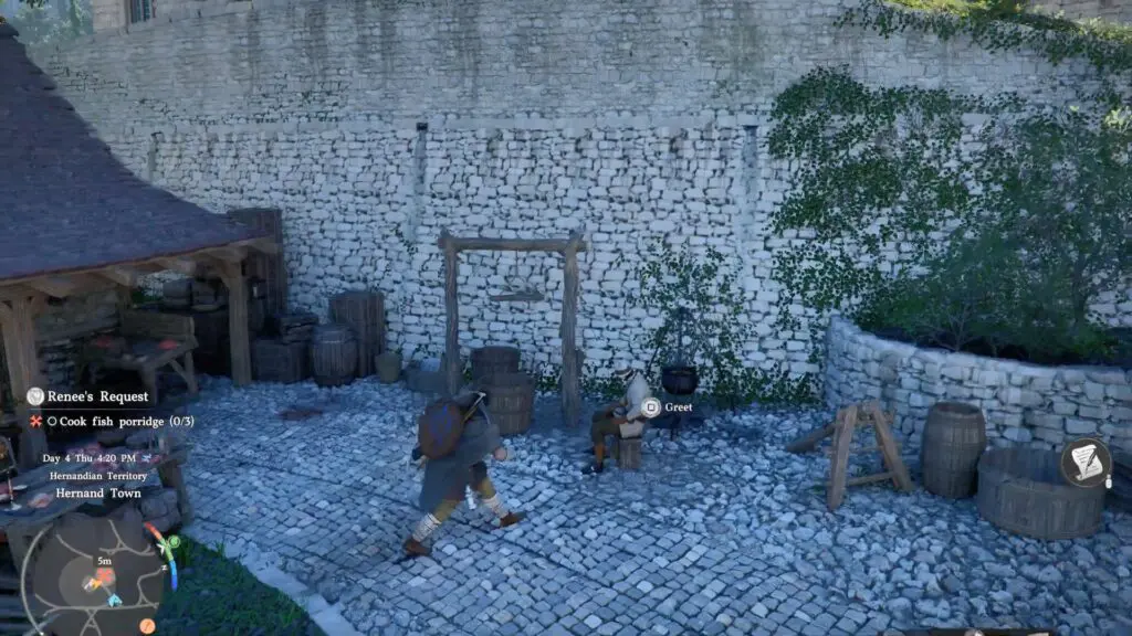 Once you’ve prepared the dish, return to Renee and hand over 3 Fish Porridge. She will thank you for your help, and the request will be complete.