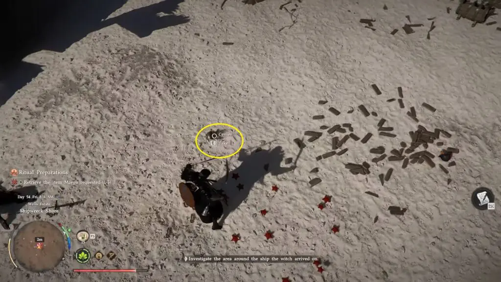 The Censer is hidden underneath the big wooden shipwreck. You can’t just reach in and grab it, as the shipwreck is sitting on top of it. To get it, use Nature’s Grasp to lift the shipwreck up and freeze it in the air. While the shipwreck is suspended, go underneath and grab the Censer.