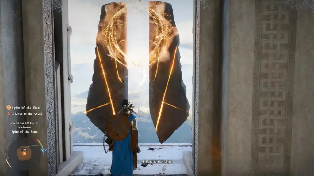 Once you are off the elevator, continue moving forward and follow the stairs going up. Keep climbing until you reach the highest floor. At the very top, you will find the entrance to the Abyss. Walk up to it and enter to end the quest.