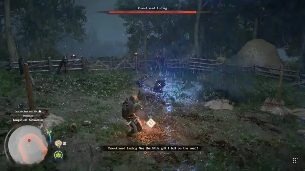 One-Armed Ludvig is not the toughest boss in the game, but he is still worth paying attention to. He only has one health bar, which makes the fight shorter than most. The main thing to watch out for is his lightning damage, which can catch you off guard if you are not ready for it
